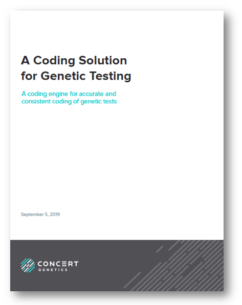 Concert has developed a novel method to translate a genetic test into a single code or code combination. This paper describes this method, the Concert Coding Engine, including the objectives, guiding principles, data inputs, underlying logic, and the limitations of the current implementation.